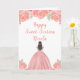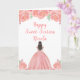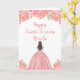 Este doce cartão de aniversário de 16 anos apresenta flores florais cor-de-rosa, brilhantes, e uma bela princesa de cabelo castanho e um vestido elegante. Isto é perfeito para uma doce festa de aniversário de dezesseis.