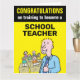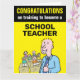 Cartão de formatura de professor. Diga Parabéns de treinamento para se tornar professor de escola para alguém que se formou e se qualificou como professor ensinando alunos.