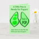 Este cartão revelador de um bebê divertido apresenta uma imagem gráfica de uma vagem verde de ervilha com 3 ervilhas verdes. A maior ervilha tem um rosto bonito com olhos e boca. Do outro lado da ervilha, em texto verde mais escuro, diz "Pronto para Pop". A design é ideal para uma revelação de gênero, mas o texto é personalizável para que você possa usá-lo para anunciar uma gravidez sem revelar o gênero se preferir. Há um grupo de pequenas ervilhas verdes no fundo.