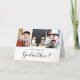 A carta de proposta de madrinha da foto moderna apresenta 3 fotos dos bebês, roteiro de tipografia ''você será nossa madrinha'' e dentro de mensagem do cartão.