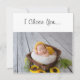 Escolhi-te para ser a minha "carta de proposta madrinha" com uma fotografia de um bebê dormindo numa cesta com girassóis. Altere o dentro de texto se desejar e adicione o nome padronizado potencial.