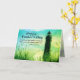 Um cartão de saudação personalizado de Dia de os pais de aspas inspiracionais retrata um farol cercado por gramíneas altas e apresenta a Bíblia Verse Proverbs 20:7, "Um homem justo caminha na integridade. Abençoados são seus filhos atrás dele." _