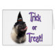 Serão truques ou ameaças neste Halloween? Nosso design de Natal tem sua raça favorita de cachorro, o Pug revestido, vestindo o chapéu de bruxa. Adicione um pouco de 'Hocus Pocus' a All Hallows este ano!