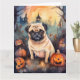 Cartão Pug do Halloween com Abóboras Assustador