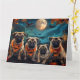 Libere o espírito assustador com esta design sombria do Dia das Bruxas apresentando um bando de cachorros sob um céu escuro e iluminado, cercado por morcegos voadores e abóboras brilhantes. Perfeito para aqueles que amam um toque de diversão terrível com seus amigos peludos!