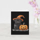 Cartão Pug Negro Com Chapéu De Bruxa E Pug De Abóbora