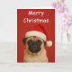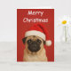 Cartão Pug with a Santa hat Custom Christmas Greeting