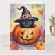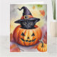 Cartão Pumpkin do Chapéu das Bruxas Pretas do Halloween