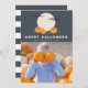 Deseje aos amigos e à família um Feliz Dia das Bruxas — e compartilhe uma foto favorita — com o nosso cartão com fotos de Patches de Abóbora moderno. Design apresenta um fundo azul enfumaçado da meia-noite com uma ascensão de lua de cheio sobre um manto de abóbora cheio de abóboras laranja vibrantes, e "Feliz Dia das Bruxas" embaixo em letras brancas e ousadas. Personalize com sua mensagem ou saudação personalizada e o ano.