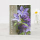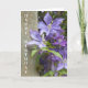 Um cartão de aniversário floral que mostra a foto das lindas e roxas flores de Clematis ao longo de uma cerca de madeira. Selecione entre um cartão de estilo mate ou brilhante.