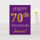 Cartão Purple, Faux Gold 70th Wedding Anniversary + Name