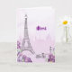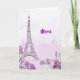 Digamos merci aos seus convidados com este cartão bonito de saudação de cor d'água roxa perfeito para um evento especial sobre o tema Paris. A Torre Eiffel está rodeada por belos iriscos roxos com uma silhueta parisiense no fundo. Use como um cartão de saudação de presente ou cartões de agradecimentos geral para um chá de panela, chá de fraldas, festa de aniversário, festa de noivado, casamento ou outra ocasião de chico parisiense. Disponível com itens correspondentes.