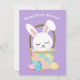 Personalize este cartão coelhinho de Felz pascoa bonito com o seu próprio texto personalizado com o nome do seu filho num script branco. Este adorável coelho senta-se numa bonito cesta de Páscoa, num belo cartão roxo para crianças.