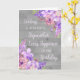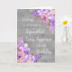 Cartão de aniversário para feliz cartão de aniversário para madrasta com flores de cor d'água roxas, padrão de madeira de cinza rústica e verso pensativo.