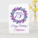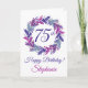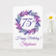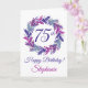 Cartão de aniversário Elegante Purple Pink Wreath 75th Este é um cartão especial único e elegante de aniversário de coroa púrpura especialmente projetado para seus amigos que estão transformando o maravilhoso marco de 75! Personalize este cartão com seu nome e uma mensagem de aniversário. Você pode personalizar o dentro com seus nomes como o doador de presente/cartão. Emparelhe este cartão com uma boa caneca personalizada da nossa loja! Seu amigo vai adorar esta carta elegantemente projetada.