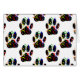Um padrão de pata de cachorro imprime com confetti um galhardete. Pet festiva idea.