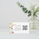 Apresentando o Cartão QR do Registro de Presente, projetado com um tema vibrante e colorido de flor silvestre de primavera, perfeito para chás de panela. Este cartão encantador permite aos hóspedes aceder facilmente ao seu registro de presentes apenas com uma digitalização, um presente de fazer que dá uma brisa. Cada carta é perfeitamente desenhada pela CaMiDesigns, acrescentando um toque de elegância à sua ocasião especial. Para obter assistência com pedidos, envio, informações sobre produtos e muito mais, entre em contato diretamente com o Atendimento ao Cliente da Zazzle.