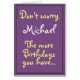 O cartão de aniversário personalizado diz "Não se preocupe - Quanto mais aniversários você tem, mais tempo você vive!"