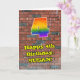 Este vibrante e empolgante grafite urbano e arte de rua inspiraram um design de cartão de saudação de aniversário com um grande número "4" com um padrão inspirado no espectro multicolorido do arco-íris, junto com a mensagem "Feliz 4º aniversário", e um nome personalizado. O fundo da frente tem um padrão de parede. O dentro tem uma mensagem de saudação de aniversário personalizada, ou talvez pudesse ser apagado e deixado vazio se uma mensagem fosse escrita manualmente. Um cartão de saudação de aniversário colorido e personalizado como este pode ser enviado para celebrar o quarto aniversário de alguém. [~Z0000586]