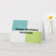 Cartão de aniversário personalizado com abstrato de quatro quadrados, azul, branco e limão