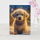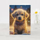 Cachorro bonito lá fora numa noite de neve personalizada cartão de Natal.