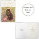Theotokos e o ícone da Criança Cristo com belas rosas cor-de-rosa com cartão de aniversário ortodoxo cristão. Personalize com todos os seus detalhes pessoais e preferências.