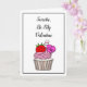 Cartão do Dia dos Namorados com cupcakes cor-de-rosa com corações e pau de doces.