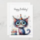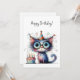 Cartão Quirky Whimsical Cat Party Hat Cake Birthday