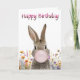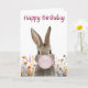 Cartão Rabbit Blowing Pink Bubble gum Happy Birthday