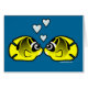 Duas de nossas bonitas natações de Butterflyfish Raccoon juntas, com bolhas em forma de coração ascensão entre elas. Que design querido para o seu docinho! Você pode personalizar totalmente este presente! Adicione texto, mude de cor, mova o peixe para o outro lado, escolha um estilo diferente - faça dele seu!