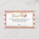 Aqui está uma opção sofisticada para seu planejamento de rifas de fralda de chá de fraldas. Este design foi embelezado com largas listras brancas, faux gold confetti e um faux gold foil ombre metal header. Por trás de um crachá branco que está delineado em duas delicadas bordas faux-gold, eu cobri o fundo em um padrão riscado ousado. Você pode mudar o plano de fundo para qualquer cor que quiser simplesmente mudando a cor do plano de fundo, usando as ferramentas personalizadas do Zazzle. Na frente, um cabeçalho em negrito lê "Fralda Raffle" em uma letra de script elegante, que adicionei como uma camada gráfica. O texto foi embelezado no efeito da folha de ouro. Abaixo, adicionei uma mensagem editável, "Venha com fraldas em pacotes de qualquer tamanho, e seu nome será digitado para uma chance de ganhar um prêmio!" e então uma linha para os nomes dos participantes serem escritos. No verso adicionei mais listras e o gráfico de confete de ouro falso. Por favor, não hesite em contactar se precisar de assistência. 89 //