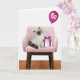 Gato bonitinho, com um balão de presente e festa cor-de-rosa para o 60º aniversário Número no balão pode ser mudado.