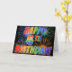 A frente deste design de cartão de saudação empolgante, vibrante e atraente apresenta um padrão colorido inspirado em fogos de artifício celebratórios, juntamente com a mensagem "FELIZ 6 BIRTHDAY!", com um padrão de gradação inspirado no arco-íris multicolorido, em um fundo preto colorido. O dentro apresenta uma mensagem de saudação personalizada, ou talvez possa ser apagado e deixado o vazio se uma mensagem for escrita manualmente. Um cartão de boas-vindas como este pode ser uma maneira divertida e feliz de enviar uma mensagem de boas-vindas de aniversário a alguém que está comemorando seu aniversário de 6. [~Z0000355]