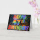 A frente desta design de carta de saudação divertida, excitante e atraente apresenta um padrão colorido inspirado em fogos de artifício celebratórios, juntamente com a mensagem "FELIZ 47º ANIVERSÁRIO!", que apresenta um padrão de gradação inspirado no arco-íris multicolor, num fundo preto colorido. O dentro apresenta uma mensagem de saudação personalizável, ou talvez possa ser apagado e deixado o vazio se uma mensagem for escrita manualmente. Um cartão de boas-vindas como este pode ser uma maneira divertida e feliz de reconhecer o 47º aniversário de alguém. [~Z0000355]