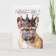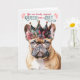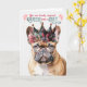 Este belo Bulldog Francês, de cor branca, com marcas pretas, parece tão elegante em uma coroa com sotaques florais e óculos de leitura, que cria um cartão de aniversário divertido para o amante francês.