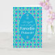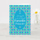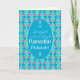 Um cartão de saudação chic para personalizar Ramadhan, com um padrão islâmico tradicional em Azul, Verde e Roxo, traçado em Branco; da coleção Posh & Painterly 'Islâmica'.