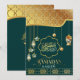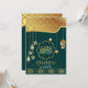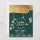 Lindas lanternas islâmicas e cartões de saudação Ramadan Kareem com caligrafia árabe dourada, turquesa e azul turquesa para celebrar o maior mês do Ramadão. O design apresenta caligrafia árabe dourada, turquesa e azul turquesa, lanternas coloridas, padrão geométrico dourado da Arábia em fundo verde. Envie seu amor e desejos para sua família, amigos e entes queridos com esses cartões de saudação de designs bonitos e elegantes. Você pode alterar ou remover clicando em personalizar este modelo.