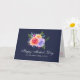 Cartão de Dia das Mães com uma mensagem interna. Criado com um lindo buquê de rosas em aquarela com raminhos, folhas e galhos juntos em um arranjo floral colorido. Fundo azul-marinho.