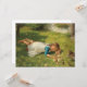 Cartão Rapariga Brincando com Pintinhos (Galinha e Galinh