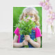 Menina bonita com um monte de ervas verdes na mão para Dia de as mães. Todo o texto pode ser alterado.