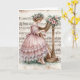 Cartão Rapariga da velha moda natalina tocando uma harpa