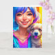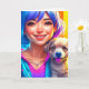 Cartão Rapariga de Anime e Cachorro Personalizado Anivers