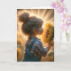 Menina bonita desfrutando de um girassol amarelo com raios de sol Texto é editável.