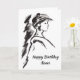Tinta preta e branca e desenho de lavagem de uma garota vestindo um chapéu. Personalize facilmente este cartão usando o recurso de texto modelo.