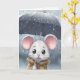 Rato branco bonito segurando um guarda-chuva na chuva por pensar em você. O texto é editável.