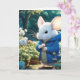 Rato branco bonito em um jardim para o aniversário. O texto é editável.
