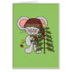 Um rato adorável do Natal em um boné de meia vermelho pôr a corda de luzes de Natal sobre a árvore do feriado em t-shirt do feriado do tema do rato, canecas, cartões, etiquetas, sacolas, ímãs, chaveiro, ornamento e caixas da lembrança, pulsos de disparo de parede, e outros artigos do feriado.