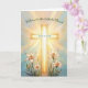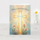 This joyful Easter design features a radiant cross glowing with warm light and surrounded by graceful white lilies, symbolizing Christ’s resurrection and the promise of new life. The bright, airy watercolor background adds a feeling of hope, celebration, and peace, making this a meaningful choice for sharing Easter blessings with family, friends, parish members, or anyone celebrating the joy of the Risen Christ.