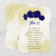 Belo cartão de assentos de casamento com flores azuis reais e folhas de ouro. São simulados os detalhes do brilho dourado. PARA MAIS PRODUTOS CORRESPONDENTES, consulte a coleção acima ou entre em contato comigo