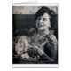 Uma senhora tatuada linda, reclinando-se no sofá.